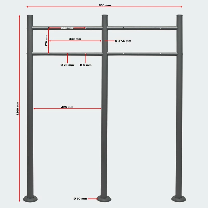 2-fach Ständer Standfuß Anthrazit RAL 7016 für Briefkasten Postbox Briefkastenständer