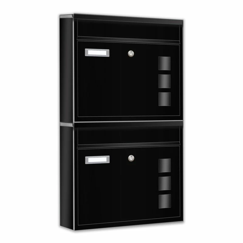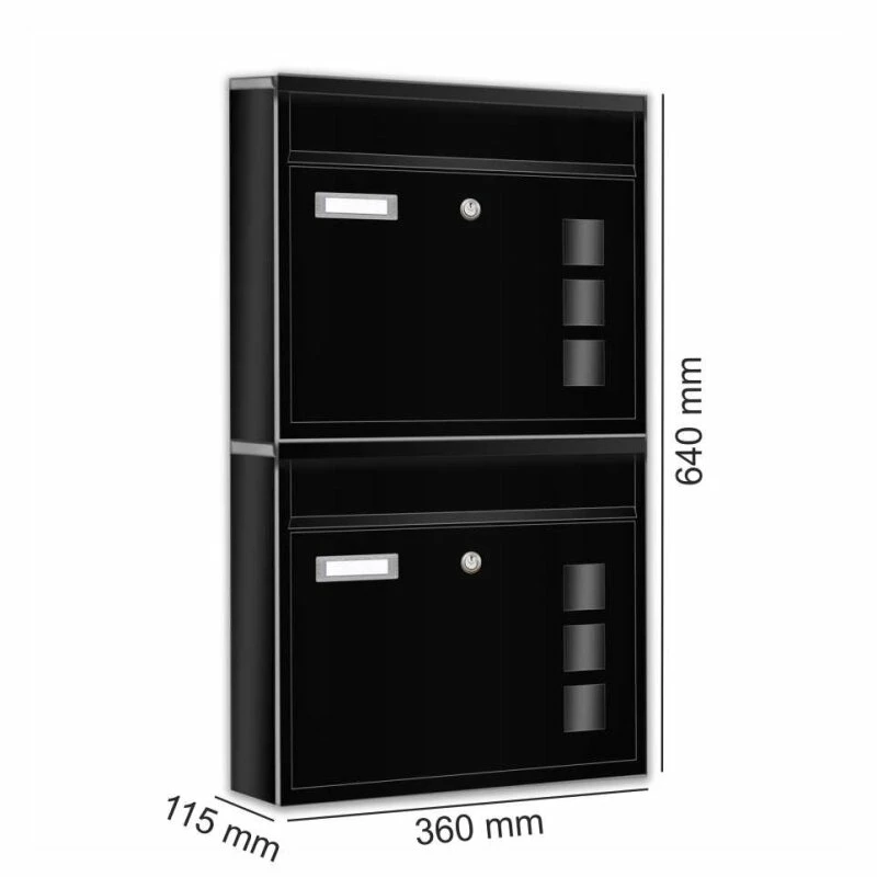 2er Briefkasten Anlage schwarz RAL 9005 für Außen Wand Design Postkasten