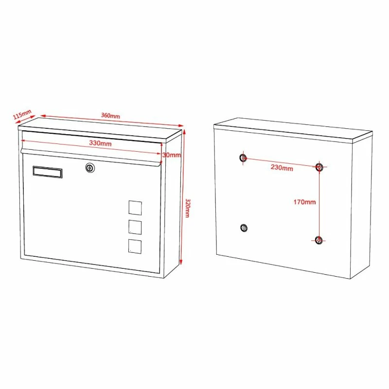 Briefkasten: 360 x 320 x 115mm (BxHxT)