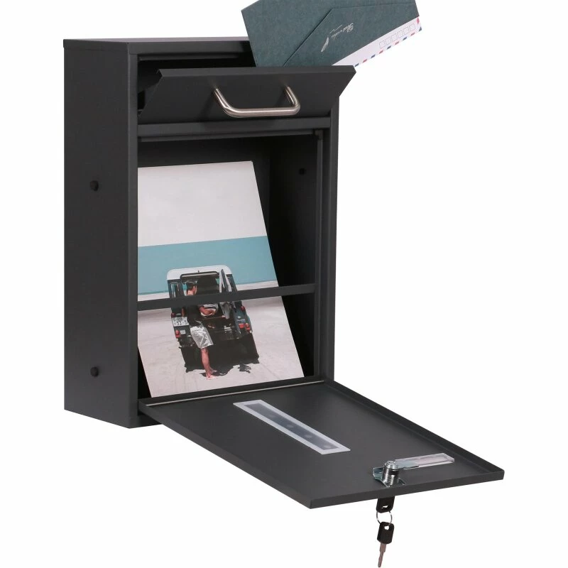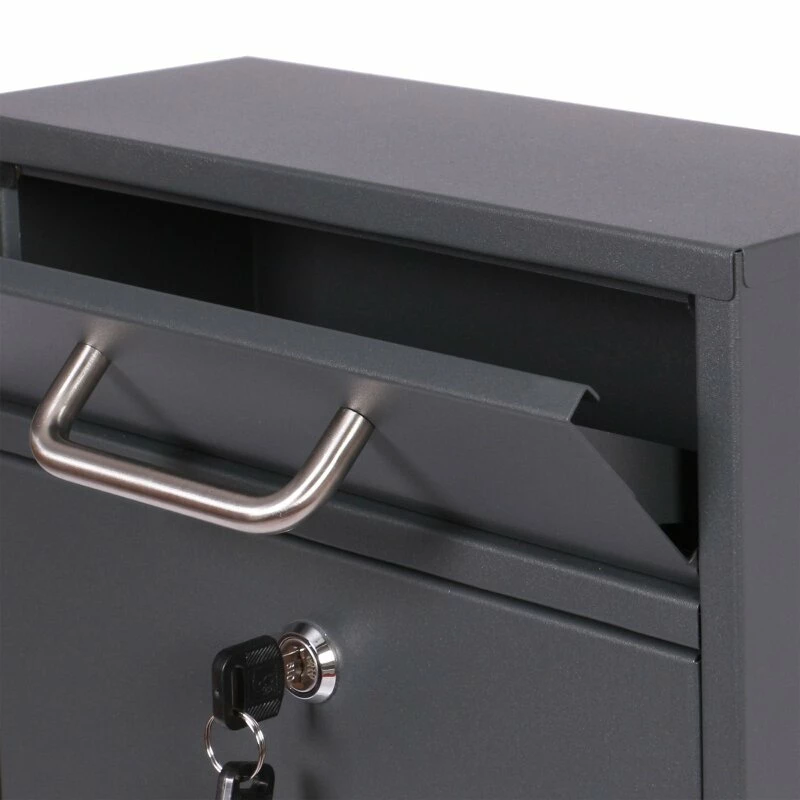 Diese anthrazitfarbenen Briefkästen in schlichtem, elegantem Design sind sowohl für den Innen- als auch den Außenbereich geeignet und bieten viel Platz für Briefe, Zeitschriften und größere Postsendungen.