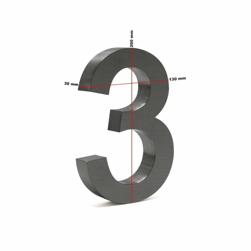 Moderne 3D Hausnummer Zahl 3 anthrazit 20cm rostfrei und wetterfest