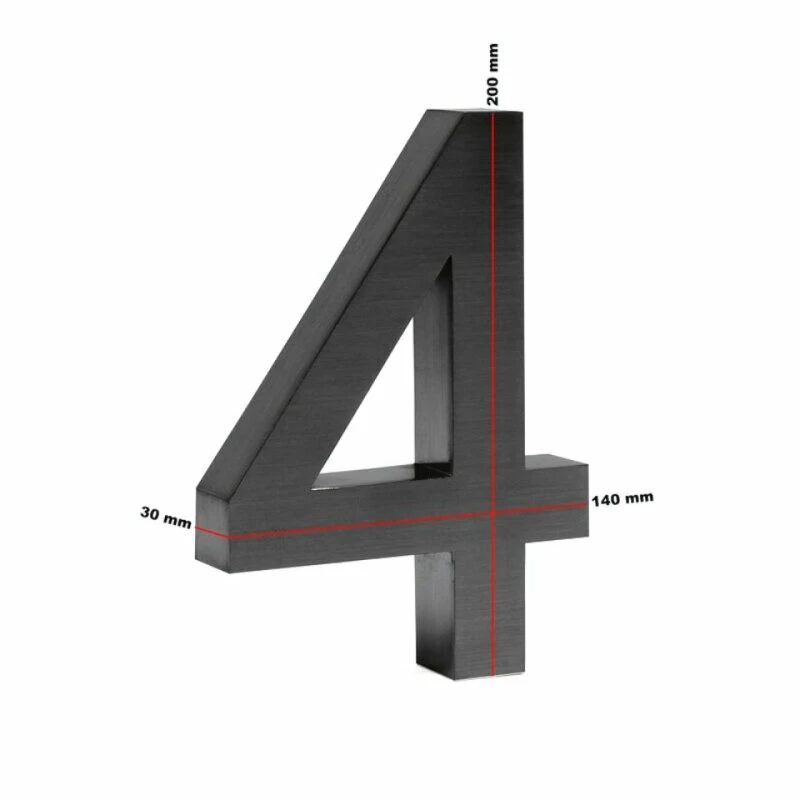 Moderne 3D Hausnummer Zahl 4 anthrazit 20cm rostfrei und wetterfest