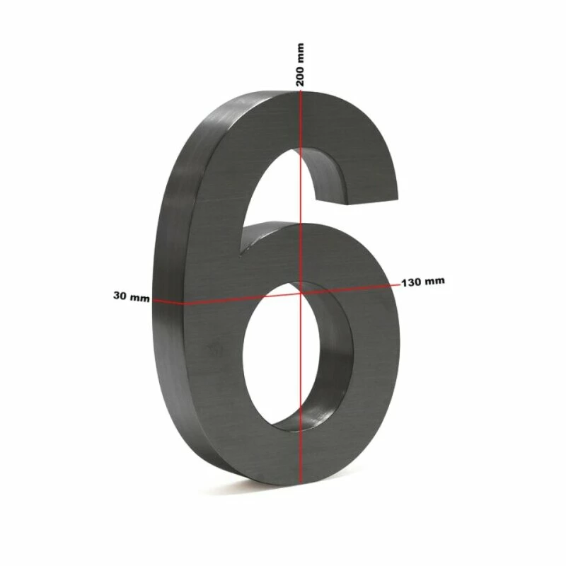 Moderne 3D Hausnummer Zahl 6 anthrazit 20cm rostfrei und wetterfest