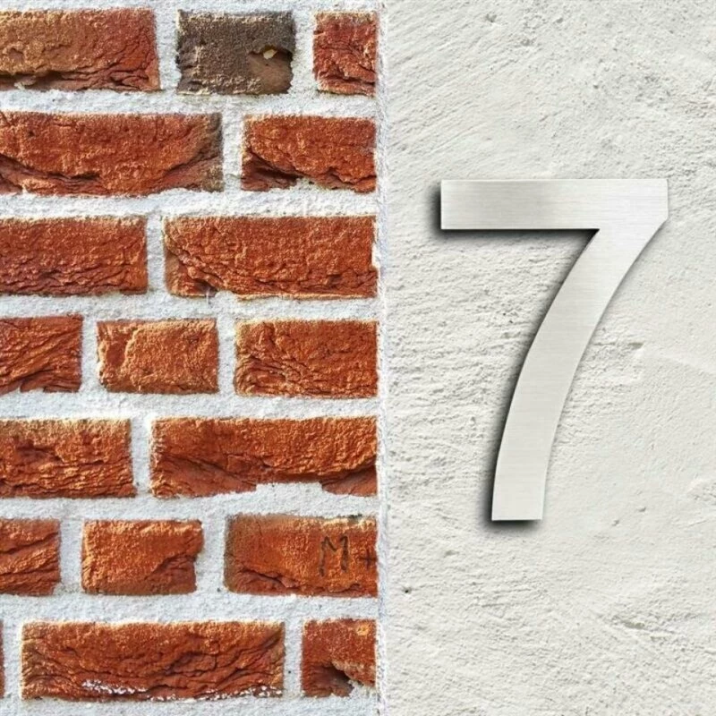 Gefertigt ist die Nummer aus matt gebürstetem Edelstahl, wodurch sie nicht nur extrem stabil ist, sondern sich auch durch besondere Witterungsbeständigkeit auszeichnet. Kratzer und Rost haben hier keine Chance!