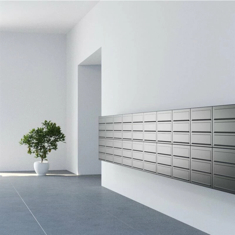 Der Wandbriefkasten ,,Comic“ im klassischen Design ist ein flexibler Dreifachbriefkasten zur Aufputzmontage. Der Briefkasten kann sowohl alleinstehend, als auch in einer Briefkastenanlage montiert werden. Hierbei kann er sowohl neben-, als auch untereinander angeordnet werden. Einwurf und Entnahme erfolgen bei diesem Modell von vorne über die Einwurfklappe und eine aufgesetzte Frontklappe. Die Schlösser befinden sich witterungsgeschützt unterhalb der Einwurfklappe, wodurch auch das klare Design nicht unterbrochen wird