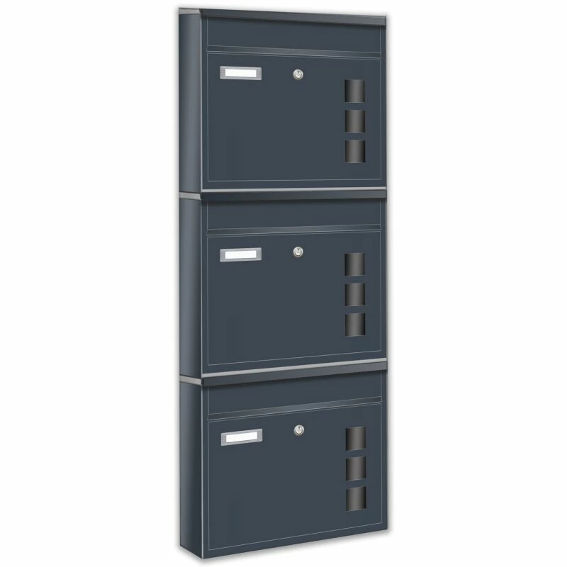 3er Briefkasten Anlage RAL 7016 anthrazit grau für Außen Wand Design Postkasten