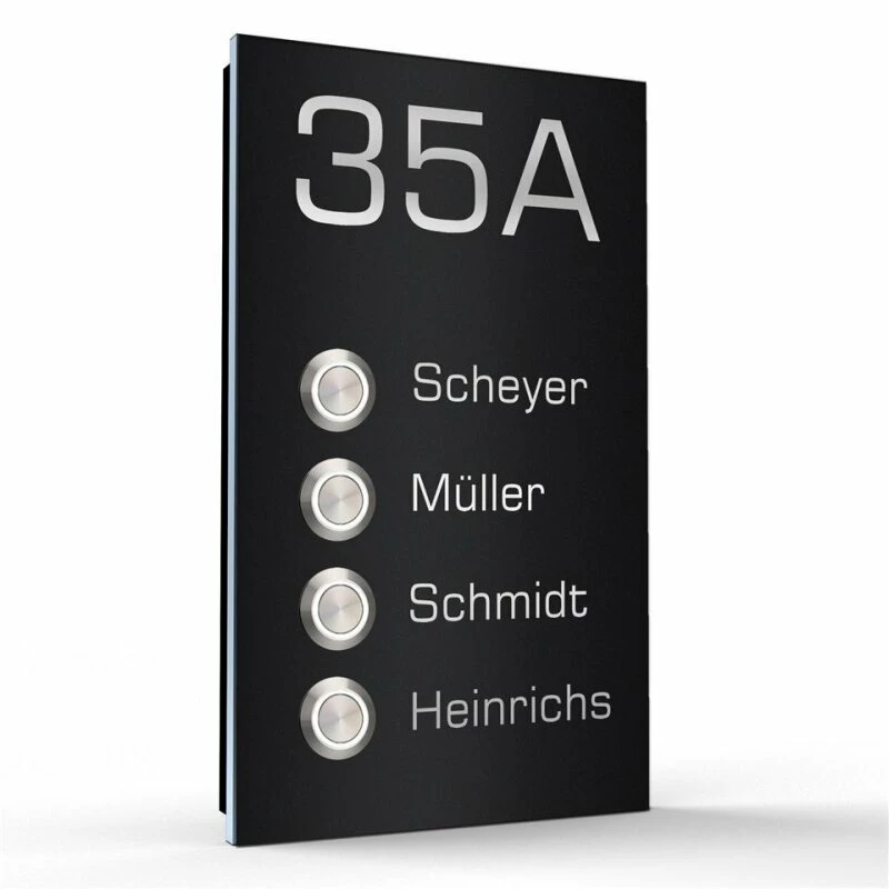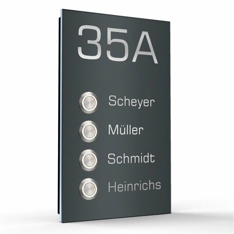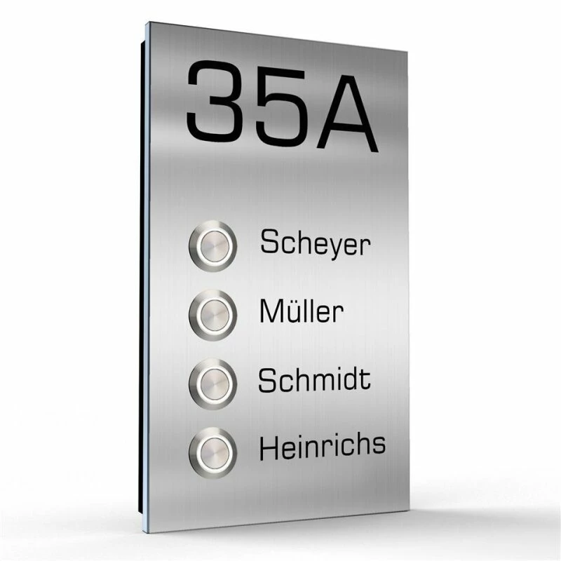 Äußerst flache 4 Familien Design Aufputz Türklingel Edelstahl – Model Markus