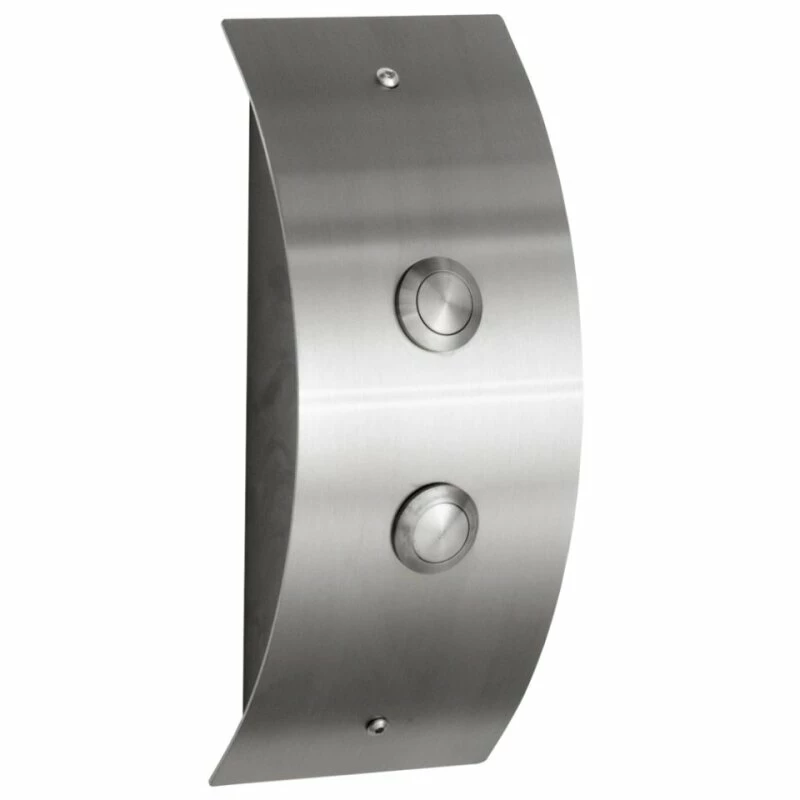 Lieferung inklusive Befestigungsmaterial – ausgestattet mit 2 Edelstahl- Klingeltaster (rund) 12 Volt