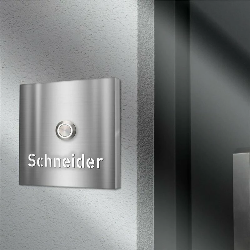 Aufputz Türklingelschild aus hochwertigem Grundmaterial Edelstahl in V2A