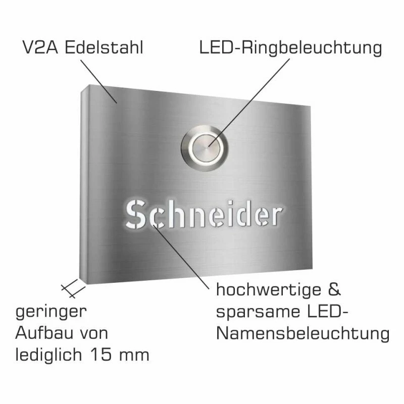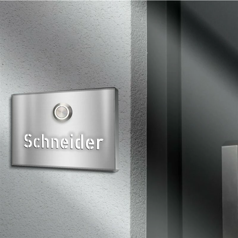 Aufputz Türklingelschild aus hochwertigem Grundmaterial Edelstahl in V2A