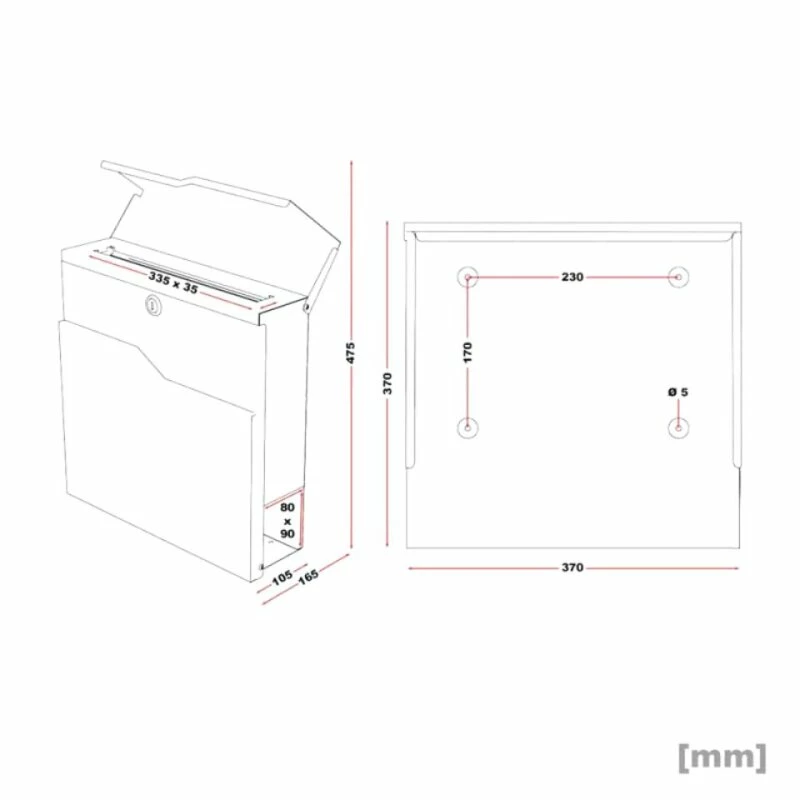 Briefkasten: 37 x 37 x 10,5 cm