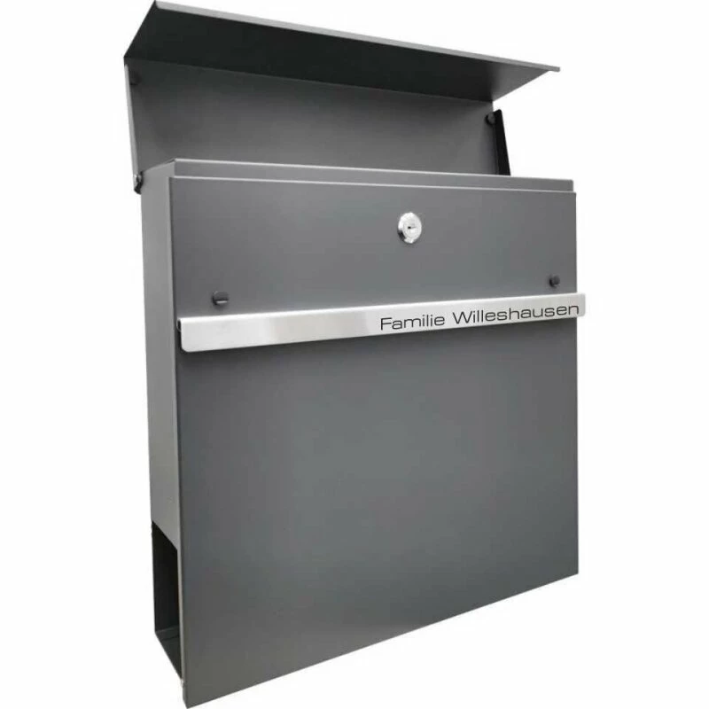 Edelstahl Briefkasten mit Beschriftung RAL 7016 anthrazit grau mit Beschriftung
