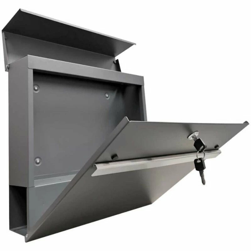 Designer aus galvanisiertem Stahl mit pulverbeschichteter Oberfläche in zeitlos schicker Optik. Der verfügt über einen großen Briefschlitz, so dass auch größere Sendungen eingeworfen werden können. Montage-Material ist ebenfalls im Lieferumfang enthalten. Weiter befindet sich auf der unteren Seite ein , so dass Zeitungen nicht mehr vor der Haustüre im Nassen abgelegt werden müssen, sondern einen trockenen Platz haben, bis sie ins Haus geholt werden.