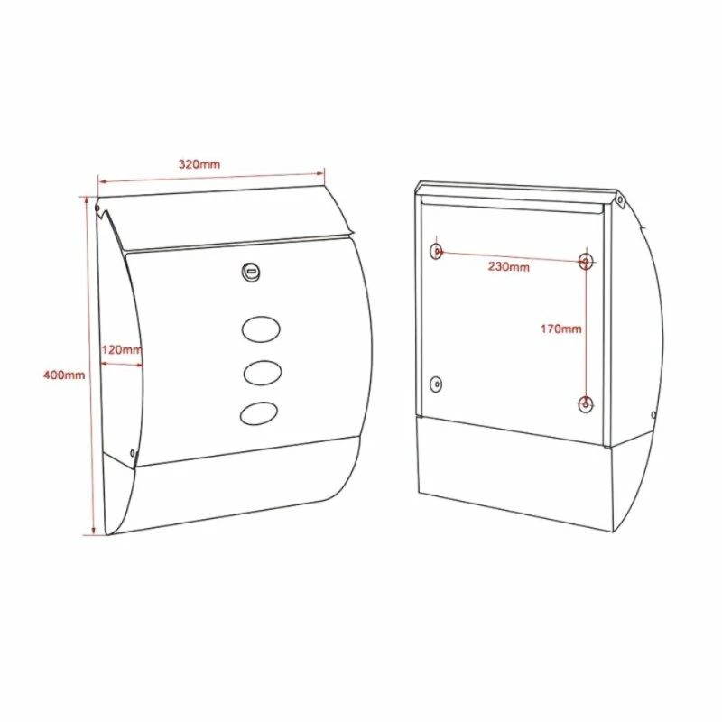 Designer Briefkasten aus beschichtetem Stahl in zeitlos schicker Optik. Der Briefkasten verfügt über einen großen Briefschlitz, ist abschließbar und wird mit zwei Schlüsseln geliefert. Montagematerial ist ebenfalls im Lieferumfang enthalten. Weiter befindet sich auf der unteren Seite ein Zeitungsfach, so dass Zeitungen nicht mehr vor der Haustüre im Nassen abgelegt werden müssen, sondern einen trockenen Platz haben, bis sie ins Haus geholt werden.