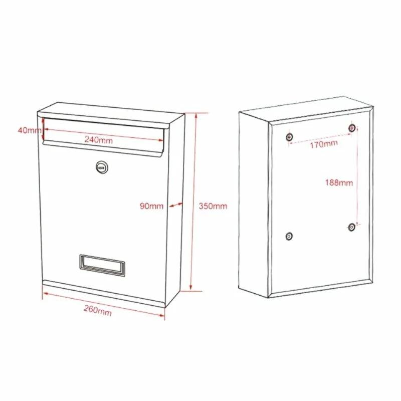 Der Briefkasten verfügt über einen großen Briefschlitz, ein Namensschildfenster und die vordere Entnahmeklappe ist abschließbar.