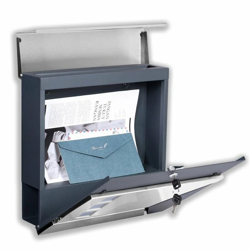 Mit einem Briefkasten kann die Optik des Außenbereichs beeinflusst werden. Daher sollte ein Briefkasten mehr können, als nur Post aufzubewahren. Vielmehr ist er eine dekorative Ergänzung des eigenen Wohnkonzepts. Dieser anthrazit-silberfarbene Briefkasten erfüllt die Kriterien und ist die perfekte Verbindung von Moderne und Funktion.