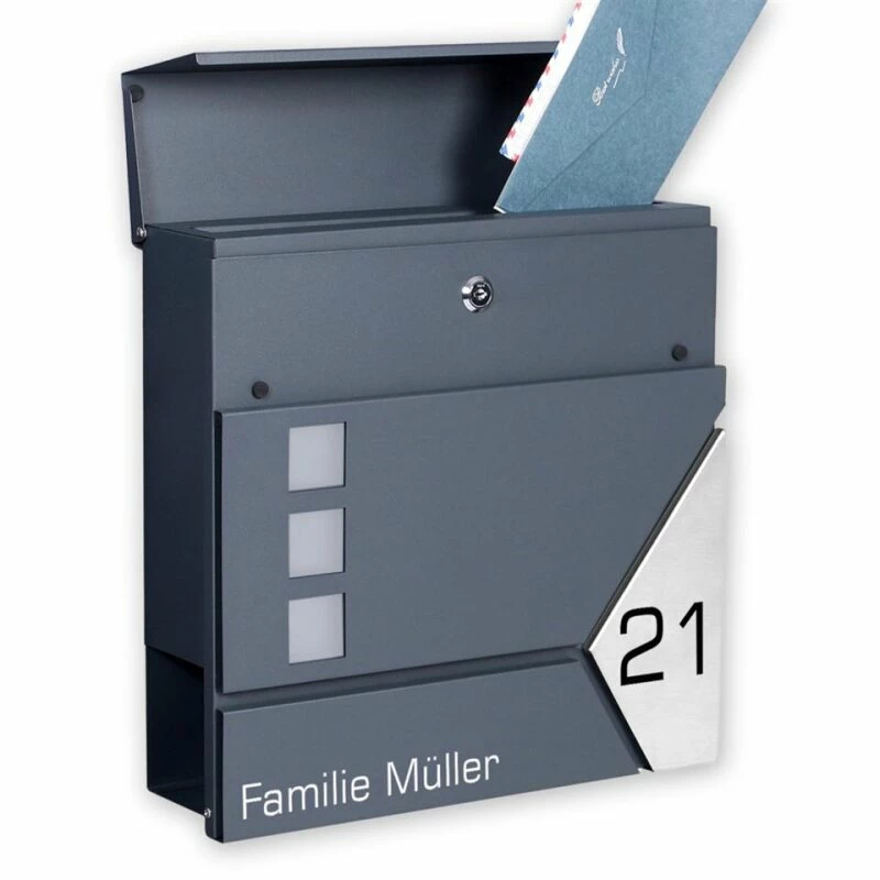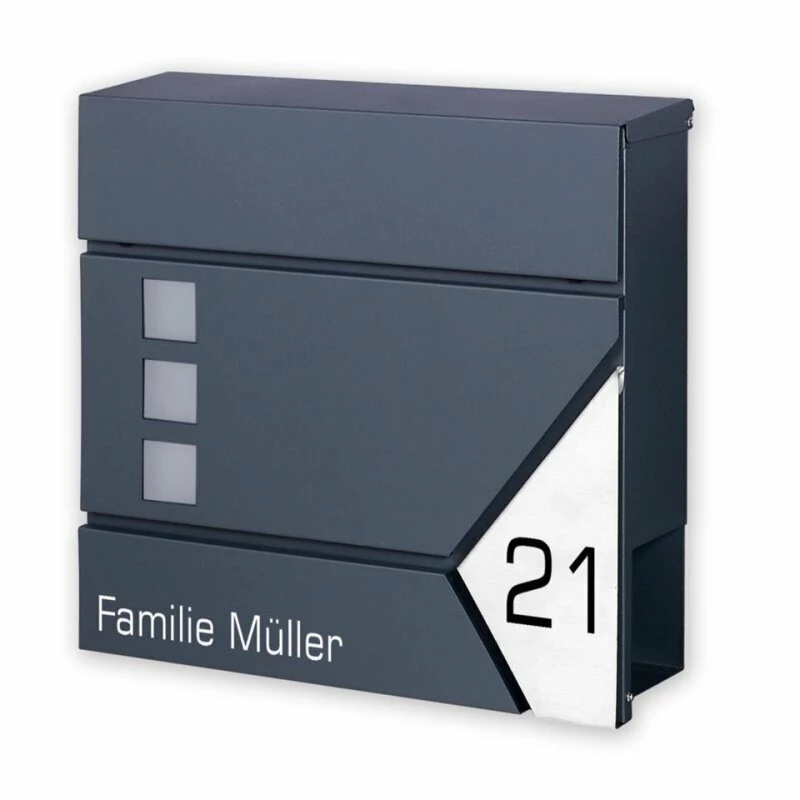 Mit einem Briefkasten kann die Optik des Außenbereichs beeinflusst werden. Daher sollte ein Briefkasten mehr können, als nur Post aufzubewahren. Vielmehr ist er eine dekorative Ergänzung des eigenen Wohnkonzepts. Dieser anthrazit-silberfarbene Briefkasten erfüllt die Kriterien und ist die perfekte Verbindung von Moderne und Funktion.