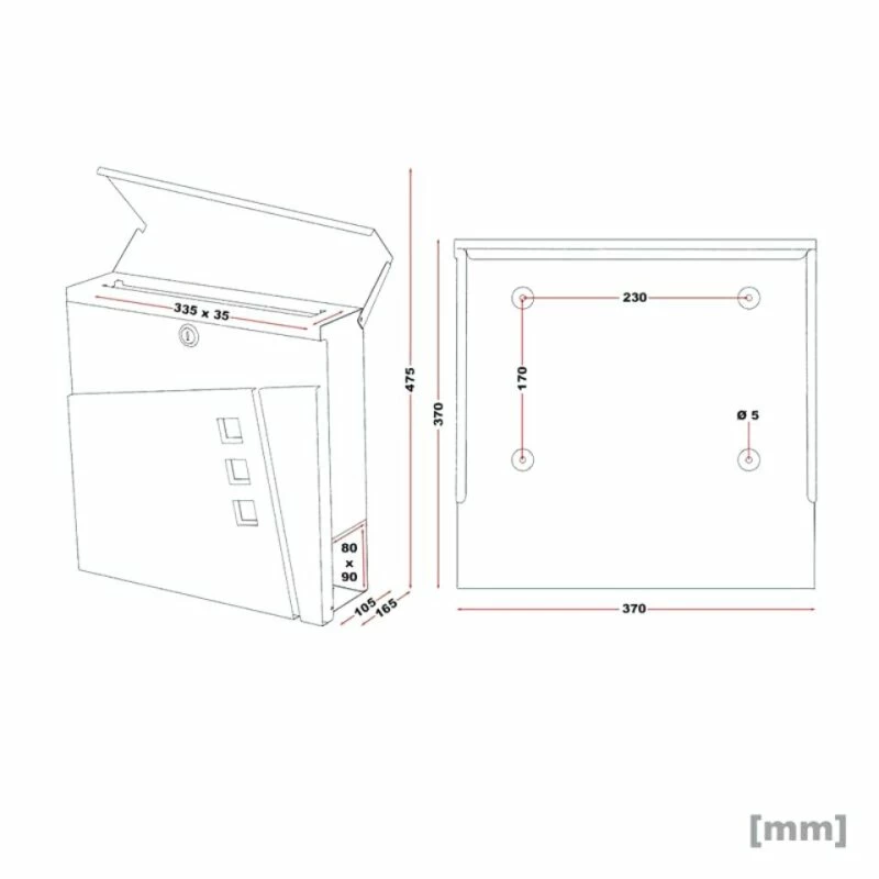Designer Briefkasten aus galvanisiertem Stahl mit pulverbeschichteter Oberfläche in zeitlos schicker Optik. Der Briefkasten verfügt über einen großen Briefschlitz, so dass auch größere Sendungen eingeworfen werden können. Montage-Material ist ebenfalls im Lieferumfang enthalten. Weiter befindet sich auf der unteren Seite ein Zeitungsfach, so dass Zeitungen nicht mehr vor der Haustüre im Nassen abgelegt werden müssen, sondern einen trockenen Platz haben, bis sie ins Haus geholt werden.