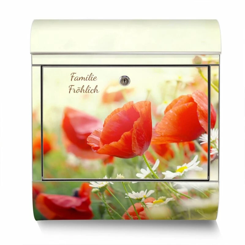 Briefkasten Briefbox Wandbriefkasten Edelstahl Kamille und Mohn