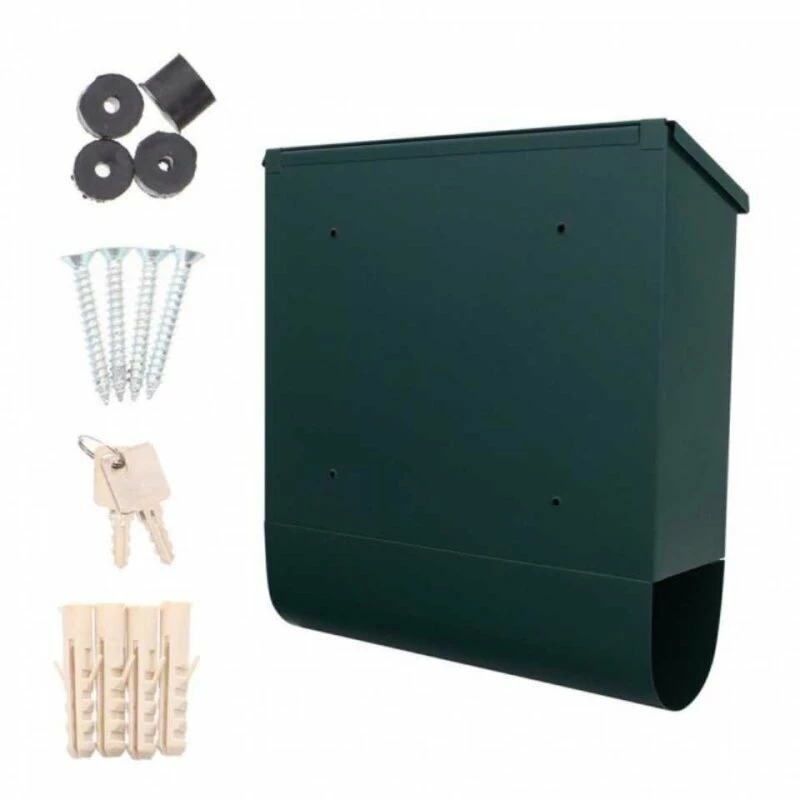 Der dezente Briefkasten Villa Spezial Set grün wird perfekt durch eine halbrunde Postrolle ergänzt.