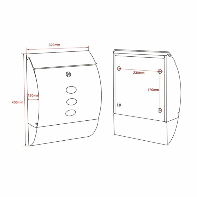 Der Briefkasten verfügt über einen großen Briefschlitz, 1 Zeitungsfach, 3 große Sichtfenster und die vordere Entnahmeklappe ist abschließbar.