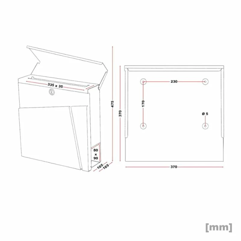 Briefkasten: 37 x 37 x 10,5 cm