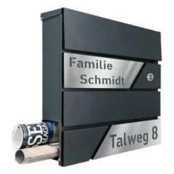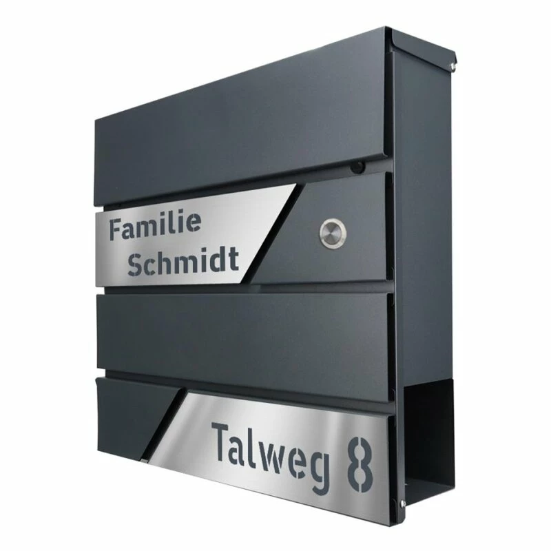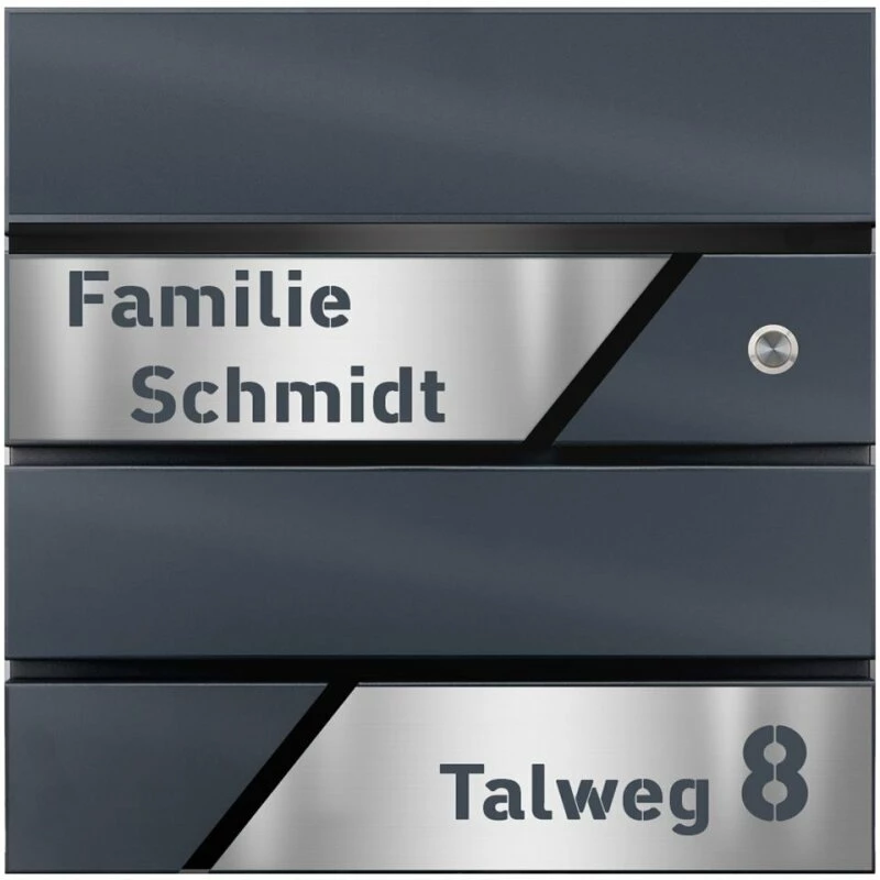 Design Briefkasten mit FUNKKLINGEL ANTHRAZIT mit Edelstahl Laser Namensblenden
