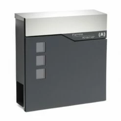Designer Briefkasten aus galvanisiertem Stahl mit pulverbeschichteter Oberfläche in zeitlos schicker Optik. Der Briefkasten verfügt über einen großen Briefschlitz, so dass auch größere Sendungen eingeworfen werden können. Montage-Material ist ebenfalls im Lieferumfang enthalten. Weiter befindet sich auf der unteren Seite ein Zeitungsfach, so dass Zeitungen nicht mehr vor der Haustüre im Nassen abgelegt werden müssen, sondern einen trockenen Platz haben, bis sie ins Haus geholt werden.