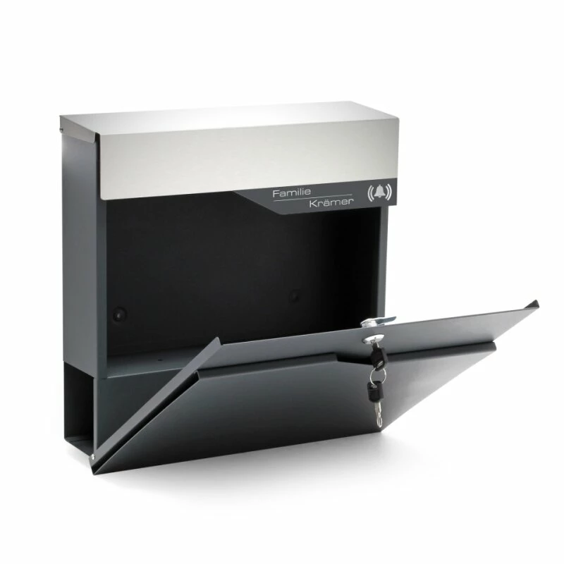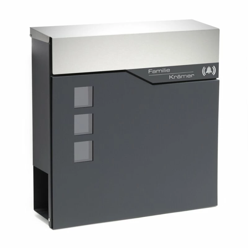 Briefkasten mit FUNKKLINGEL ANTHRAZIT Postkasten Wandbriefkasten TOMA