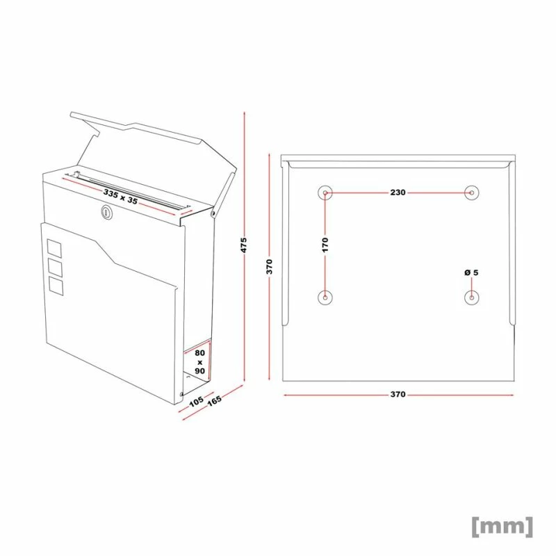 Maße Briefkasten: 37 x 37 x 10,5 cm