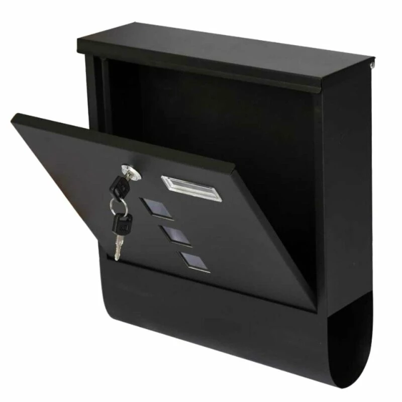 Dieser RAL 9005 schwarzfarbene Briefkasten aus Edelstahl überzeugt mit genügend Platz für Briefe, einem Zeitungsfach und einem Sichtfenster für das Namensschild. Der abschließbare Briefkasten punktet mit seinem großen Fassungsvermögen, sodass der Kasten auch für Unternehmen geeignet ist. Durch den breiten Einwurfschlitz passen selbst größere Briefe hindurch, ohne geknickt zu werden. Die Entnahmeöffnung ist großzügig bemessen und ermöglicht es, die Post ohne Beeinträchtigungen zu entnehmen.