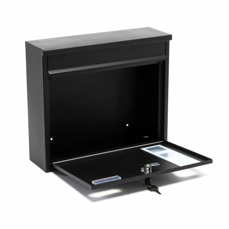 Briefkasten aus beschichtetem Stahl – schwarz pulverbeschichtet – QUALITÄT – Wetterfester Premium Briefkasten. Einwurfklappe mit Geräuschdämmung.