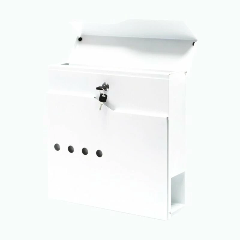 Designer Briefkasten aus galvanisiertem Stahl mit pulverbeschichteter Oberfläche in zeitlos schicker Optik. Der Briefkasten verfügt über einen großen Briefschlitz, so dass auch größere Sendungen eingeworfen werden können. Montage-Material ist ebenfalls im Lieferumfang enthalten. Weiter befindet sich auf der unteren Seite ein Zeitungsfach, so dass Zeitungen nicht mehr vor der Haustüre im Nassen abgelegt werden müssen, sondern einen trockenen Platz haben, bis sie ins Haus geholt werden.