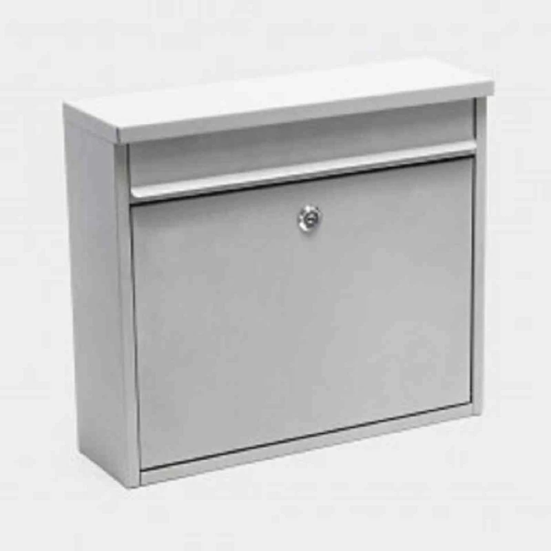Briefkasten aus beschichtetem Stahl – Silber pulverbeschichtet – Wetterfester Premium Briefkasten. Einwurfklappe mit Geräuschdämmung. Der Briefkasten verfügt über einen großen Briefschlitz und über eine abschließbare vordere Entnahmeklappe.