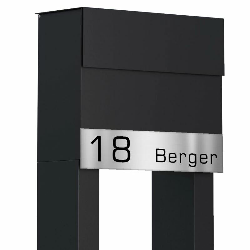 Briefkasten Standbriefkasten Cube Schwarz RAL 9005 mit Beschriftung