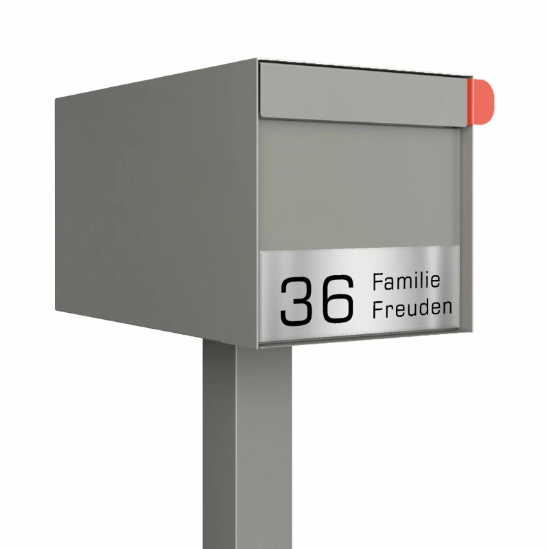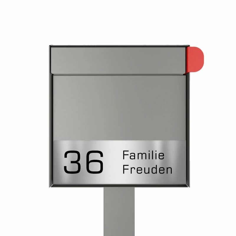 Briefkasten Standbriefkasten Square Grau Metallic RAL 9007 mit Beschriftung