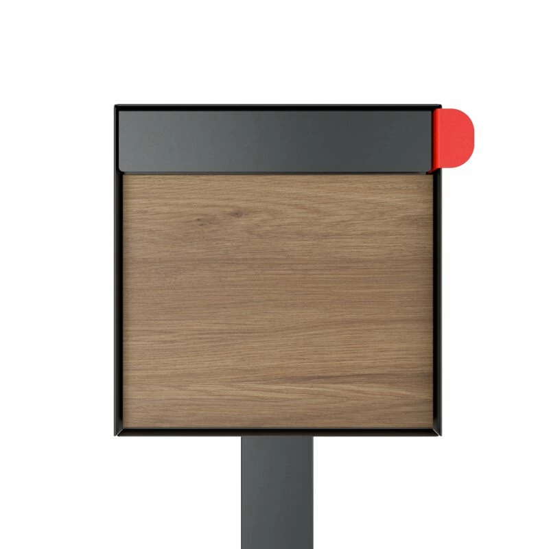 Als freistehender Einzelbriefkasten eignet er sich für die Bodenmontage auf freier Fläche. Einwurf und Entnahme erfolgen an der Vorderseite über eine massive Frontklappe und ein dahinterliegendes Innentor mit integriertem Einwurfschlitz und Schloss. Das Besondere: Der eingriffsichere Schlitz ermöglich den Einwurf kleiner Päckchen. Die massive Frontklappe schützt das Innentor vor Witterung und lässt sich als stilistisches Element individuell gestalten.