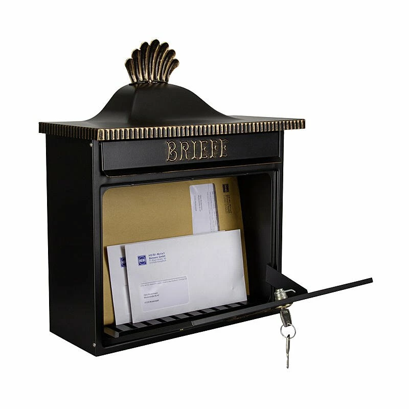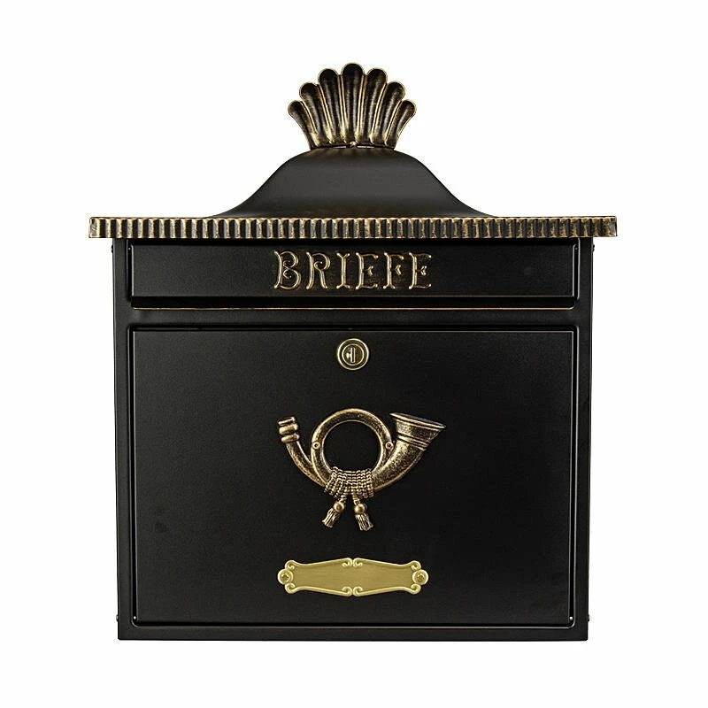 Briefkasten Wandbriefkasten Briefbox Schwarz / Gold