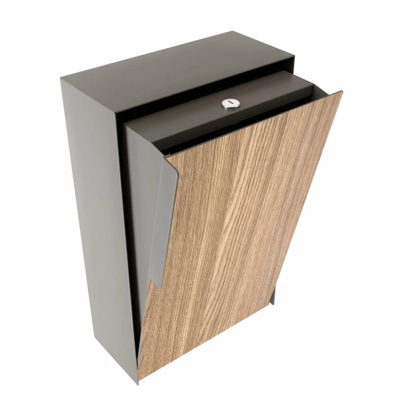 Briefkasten Wandbriefkasten Firona Grau Metallic RAL 9007 mit Holzdekor-Front