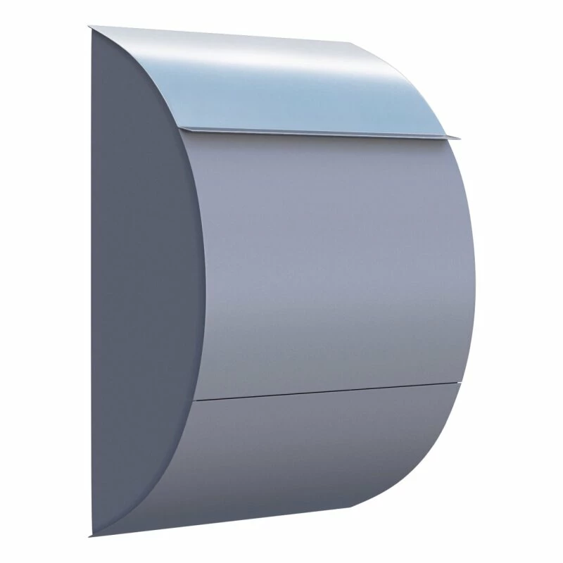 Briefkasten Wandbriefkasten Round Grau Metallic RAL 9007 mit Edelstahlklappe