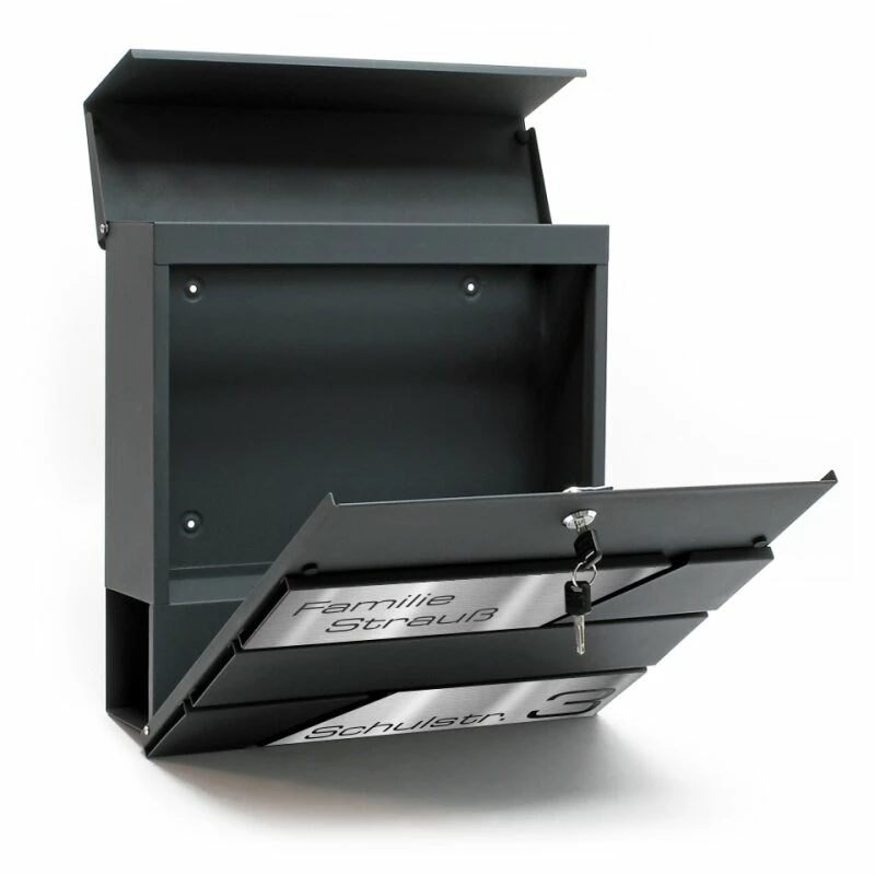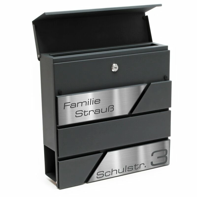 Briefkasten Wandbriefkasten Zeitungsfach mit Edelstahl Laser Namensblende Crest