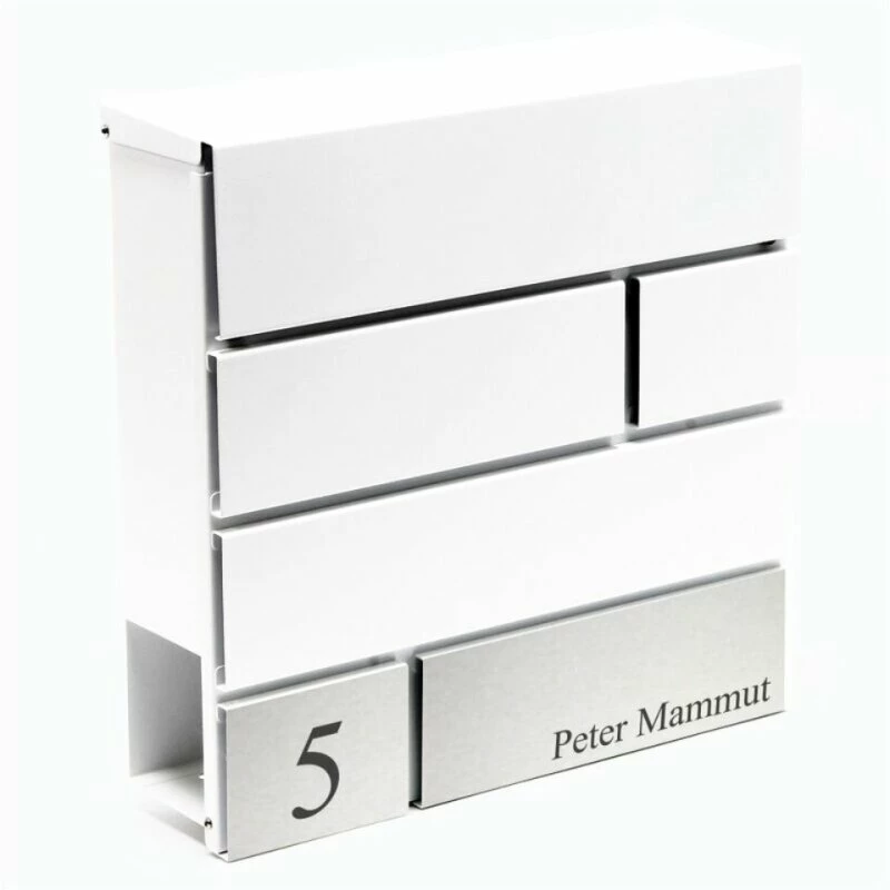 Briefkasten mit Beschriftung – WEIß pulverbeschichtet – modernes Design