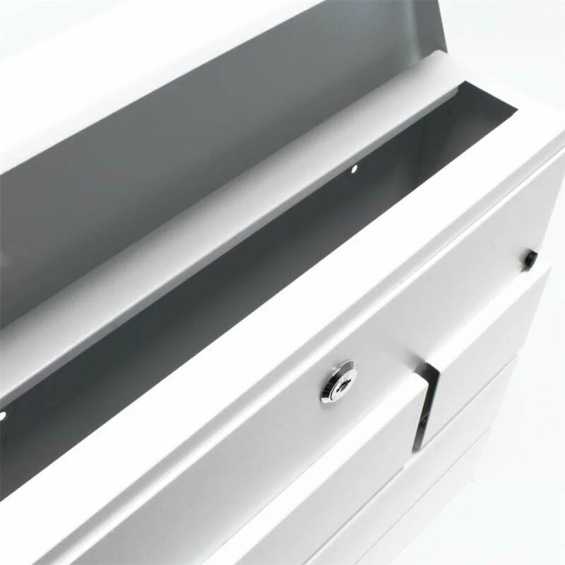Designer Briefkasten mit pulverbeschichteter Oberfläche in weiß. Zeitlos schicke Optik. Der Briefkasten verfügt über einen großen Briefschlitz, so dass auch größere Sendungen eingeworfen werden können. Montage-Material ist ebenfalls im Lieferumfang enthalten. Weiter befindet sich auf der unteren Seite ein Zeitungsfach, so dass Zeitungen nicht mehr vor der Haustüre im Nassen abgelegt werden müssen, sondern einen trockenen Platz haben, bis sie ins Haus geholt werden.