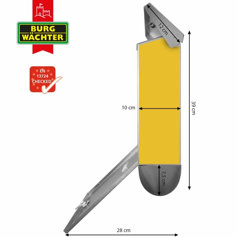 Der BURG-WÄCHTER Edelstahl Briefkasten mit Motiv Briefkasten Gelb und Zeitungsrolle bietet Ihnen mit seinem Fassungsvermögen genügend Platz auch für große A4 Sendungen und Zeitschriften. Das integrierte Regendach schützt Ihre Post vor dem Eindringen von Regen.