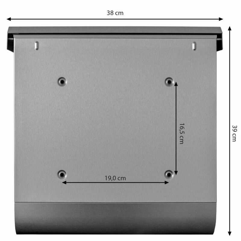 Der Briefkasten besteht aus Edelstahl, einem hochwertigen Material das rostfrei und äußerst unempfindlich gegenüber Witterungseinflüssen ist. Das Motiv besteht aus einer wetter- und UV-festen Folie, die Ihren Briefkasten zusätzlich vor Kratzern schützt. Der Postkasten ist je nach Auswahl 38 x 39 x 12 CM oder 38 x 31,5 x 12 cm (BxHxT) groß. Der Briefeinwurf ist 33,2cm x 3,1cm, Format DIN C4. Der Briefkasten wird mit Montagematerial und zwei Schlüsseln geliefert.