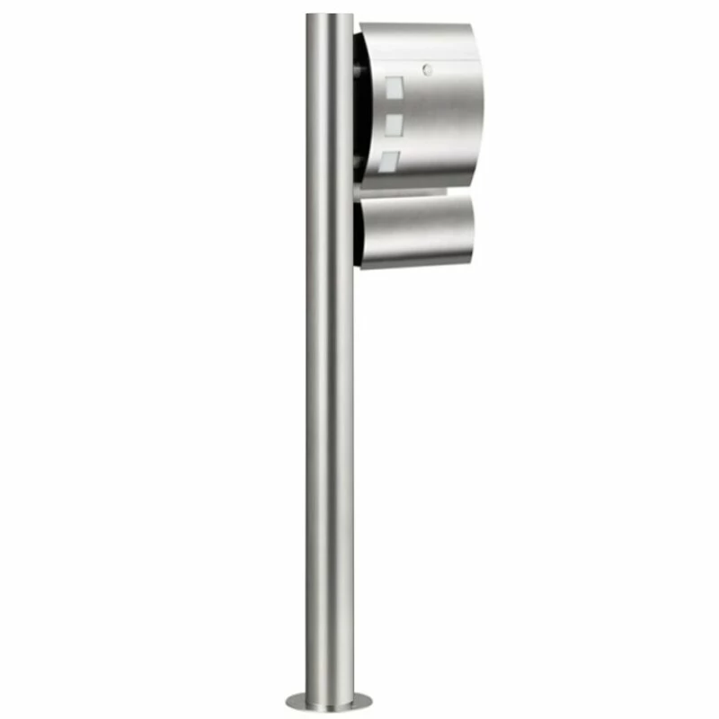 CMD Massiver Edelstahl Briefkasten gebogen mit Standsäule & Zeitungsfach