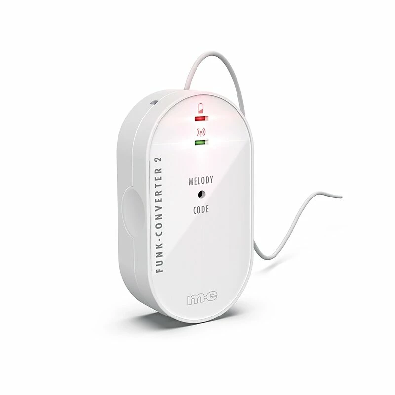 Der Mini-Funkconverter (Sender) wird direkt an der Klingelleitung oder versteckt im Gehäuse Ihres vorhandenen Gongs angeschlossen und sendet ein Funk-Signal an Türglocken-Empfänger aus der BELL- und FG-Serie.