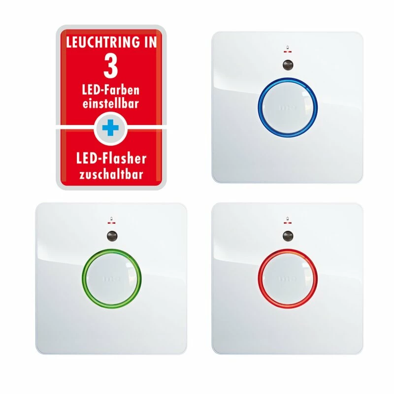 Mit LED-Flasher (zuschaltbar): Optische Anzeige durch leuchtstarkes LED-Blitzlicht. Ideal bei Seh- und Hörschwäche