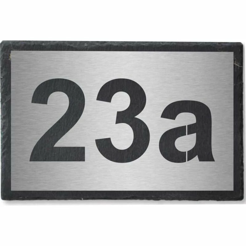 Edle, hochwertige Hausnummer aus Edelstahl & Schiefer
