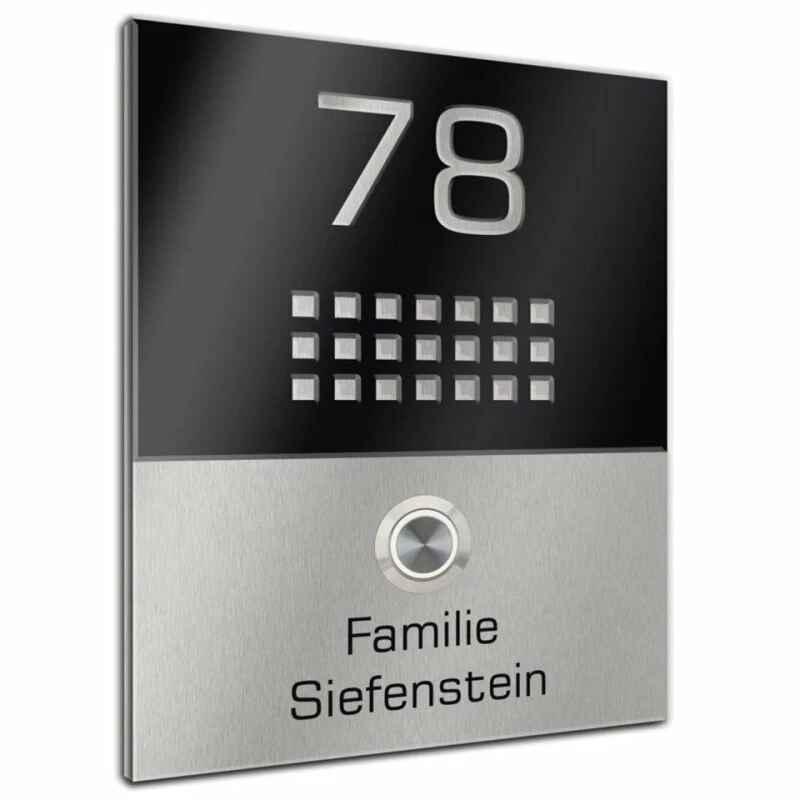 – Aufgesetzte anthrazit-matt farbene Acrylglasplatte für die Hausnummer